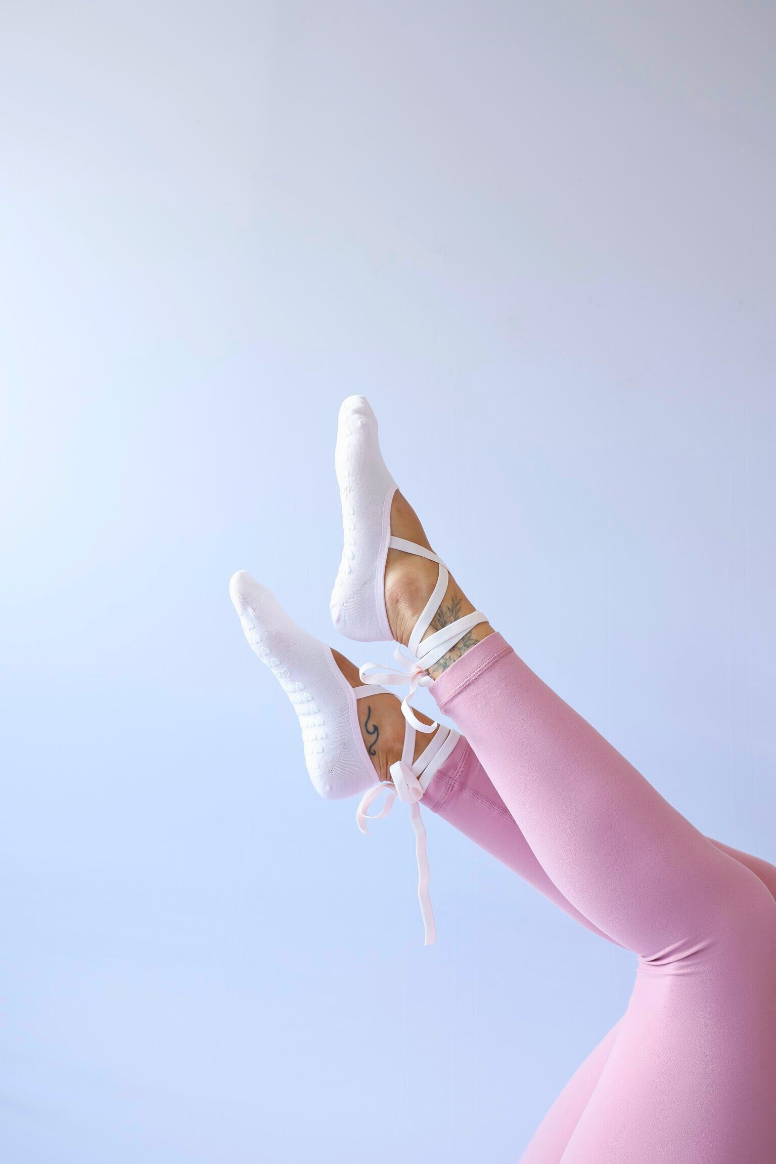Where ballet elegance meets studio functionality. Features soft, lightweight, breathable cotton with a ballet-inspired wrap tie that keeps your sock snug and stylish through every plié and pulse.